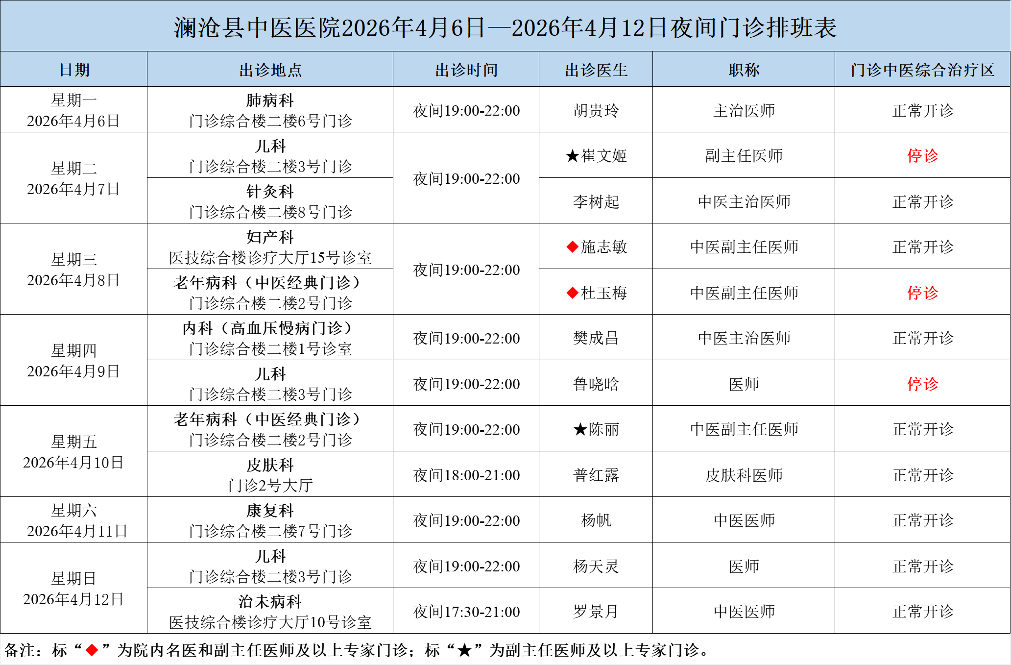 专家夜间门诊